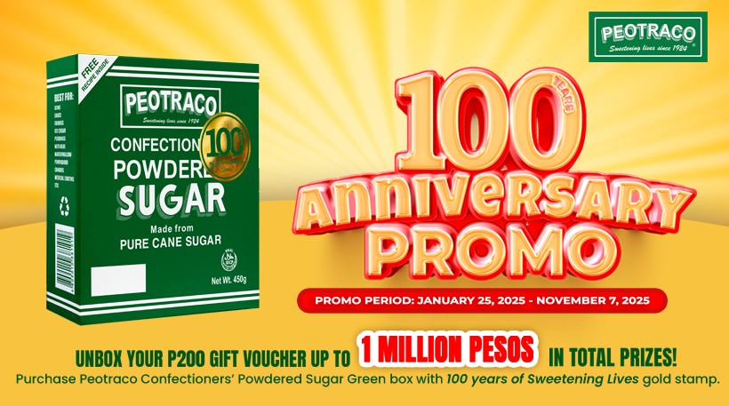 Peotraco Promo 100 Anniversary PromopeotracoJanuary 25, 2025Mechanics 1. Lucky patrons who may find the voucher inside Peotraco Confectioners’...