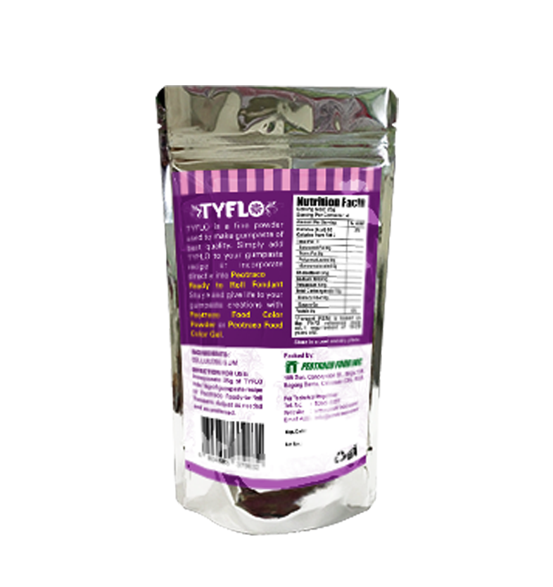 Peotraco TYLFO is a high-quality powdered gum used to transform fondant into gumpaste. Its superfine texture allows for easy mixing into sugar dough. It is also suitable as edible glue for cake decorating.