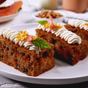 Fold in the diced ripe papaya and chopped walnuts until well combined.
